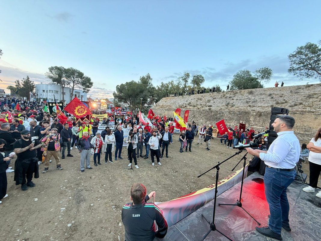 Kıbrıs’ta 1 Mayıs’ın kutlanmasının 100’üncü yıl dönümü olduğuna dikkat çekilen etkinlikte, ülkenin birleşmesinin, işçi sınıfı için öncelik olmaya devam ettiği vurgusu yapıldı.