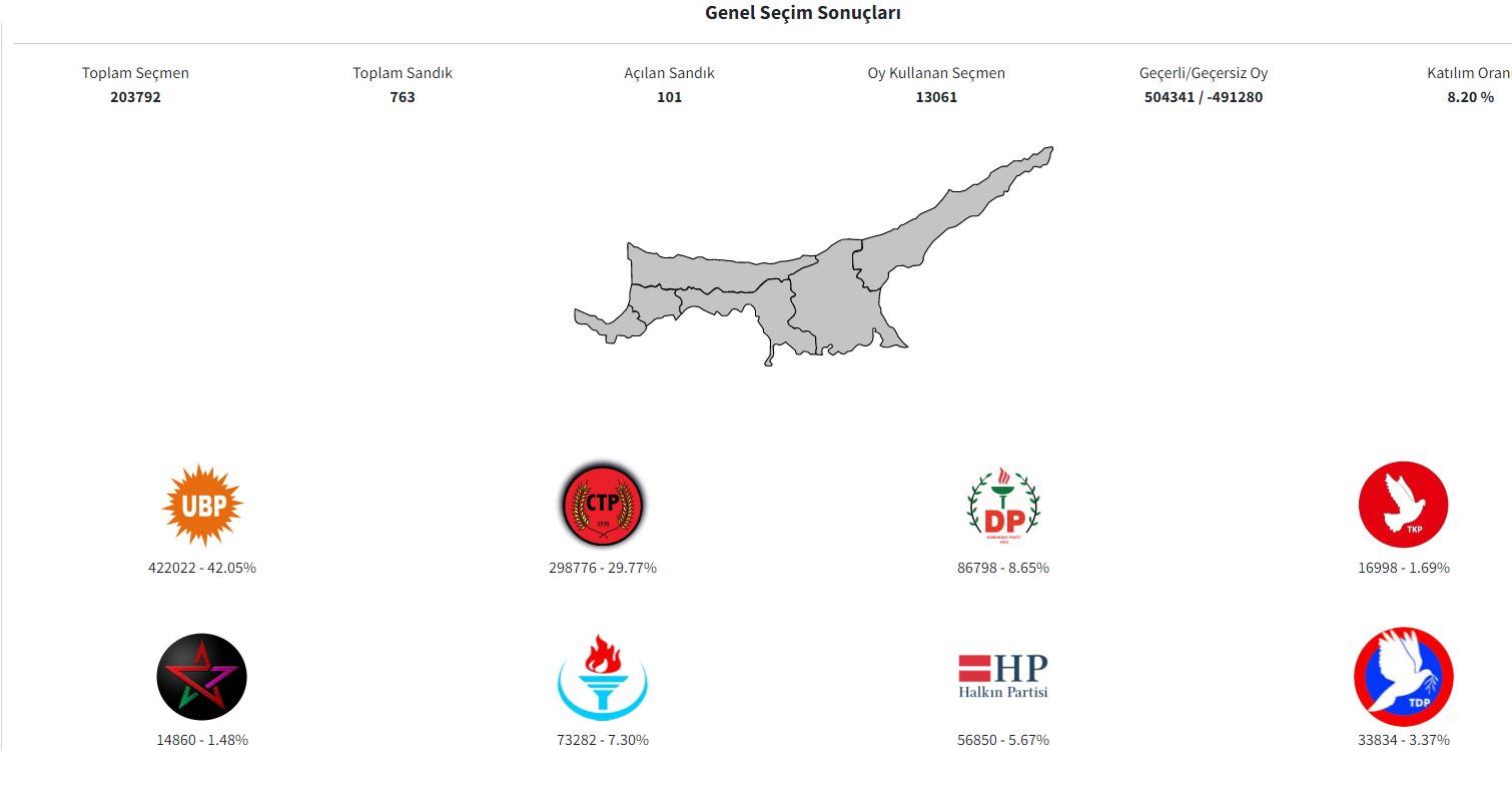 KKTC’de bugün yapılan Milletvekilliği Erken Genel Seçimi’nin kesin olmayan sonuçları açıklanıyor.