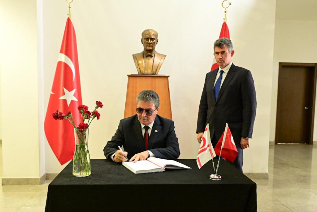 Başbakan Ünal Üstel Türkiye ‘de yaşanan deprem dolayısıyla Türkiye Cumhuriyeti Büyükelçiliği’nde açılan taziye defterini imzaladı.