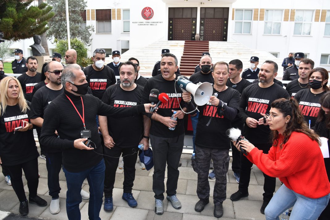 Kamuda örgütlü 3 sendika, TL’nin döviz karşısındaki değer kaybından dolayı, “giderek yoksullaşan halkın sorunlarına dikkat çekmek için” Girne Boğaz’dan Meclis önüne yürüdü.