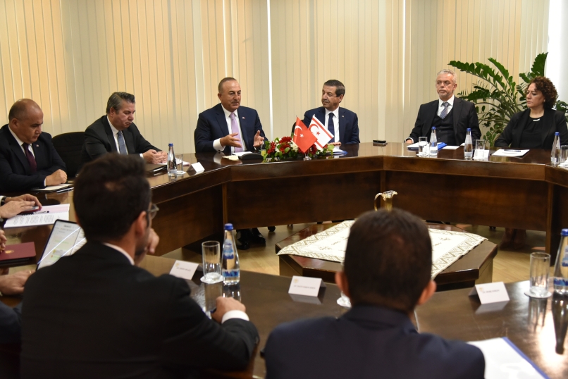 Ertuğruloğlu’nu makamında ziyaret eden ve ilk olarak onunla baş başa görüşen Çavuşoğlu’na, Bakan Yardımcısı Sedat Önal, Türkiye’nin Lefkoşa Büyükelçisi Ali Murat Başçeri ve diğer yetkililer eşlik etti.