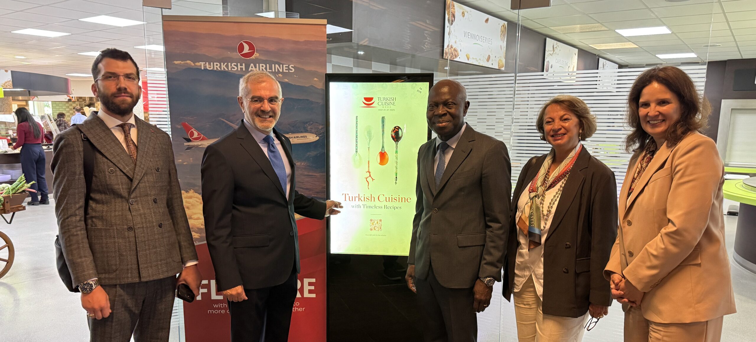 THY’nin desteğiyle düzenlenen etkinlikte, Türk Şef Ömer Sarıkaya tarafından hazırlanan menü çerçevesinde Türk mutfağının klasik tatları olan mercimek çorbası, imam bayıldı, şehriyeli beyaz pilav, tantuni ve baklava sunuldu.
