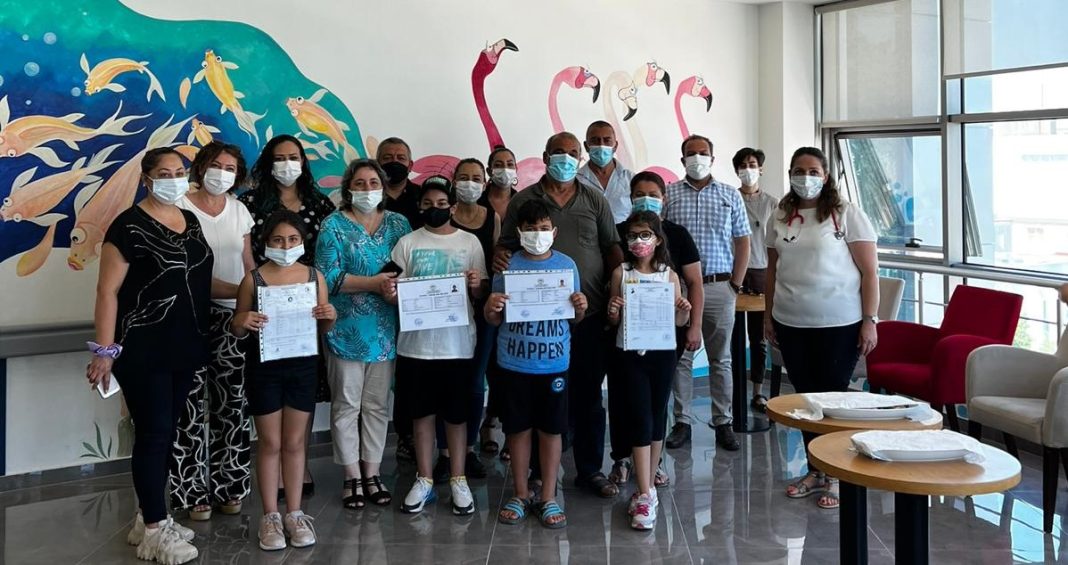 Dün hastanede ve evde eğitim gören Kemal Saraçoğlu Vakfı çocukları, 2021-2022 eğitim yılı yıl sonu karnelerini, Dr. Burhan Nalbantoğlu Devlet Hastanesi Çocuk Onkoloji ve Hematoloji Servisi’nde aldılar.