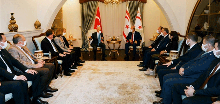 Cumhurbaşkanlığı’ndan yapılan yazılı açıklamaya göre Tatar kabulde yaptığı konuşmada, Kıbrıs meselesinin Türkiye Cumhuriyeti ile birlikte yürütülen milli bir mesele olduğunu, yıllardır müzakere masalarında tartışıldığını fakat hiçbir zaman karşı tarafın kendileriyle eşitlik temelinde bir antlaşma için uzlaşmaya çalışmadığını söyledi.