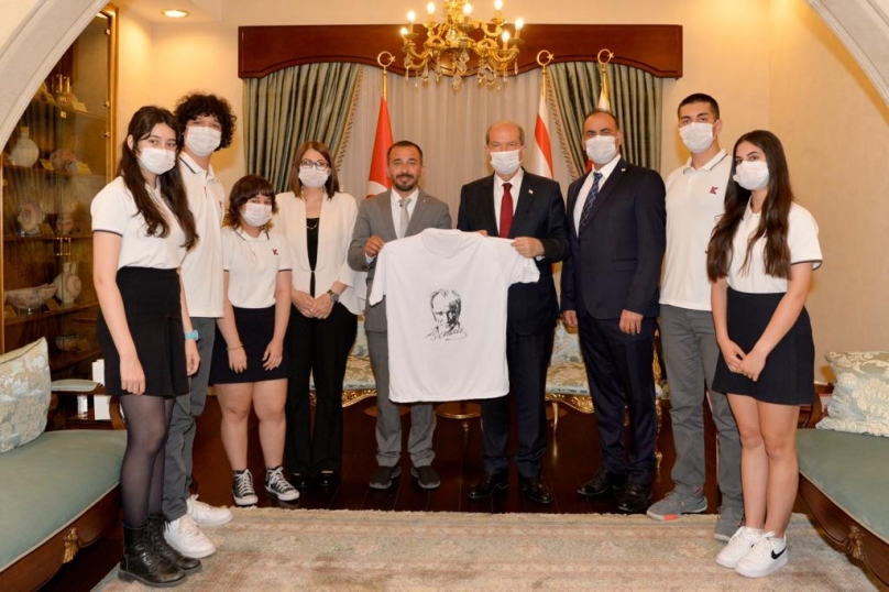 Cumhurbaşkanı Ersin Tatar, 19 Mayıs Atatürk’ü Anma Gençlik ve Spor Bayramı çerçevesinde, TED Kuzey Kıbrıs Koleji öğrencilerini kabul etti.