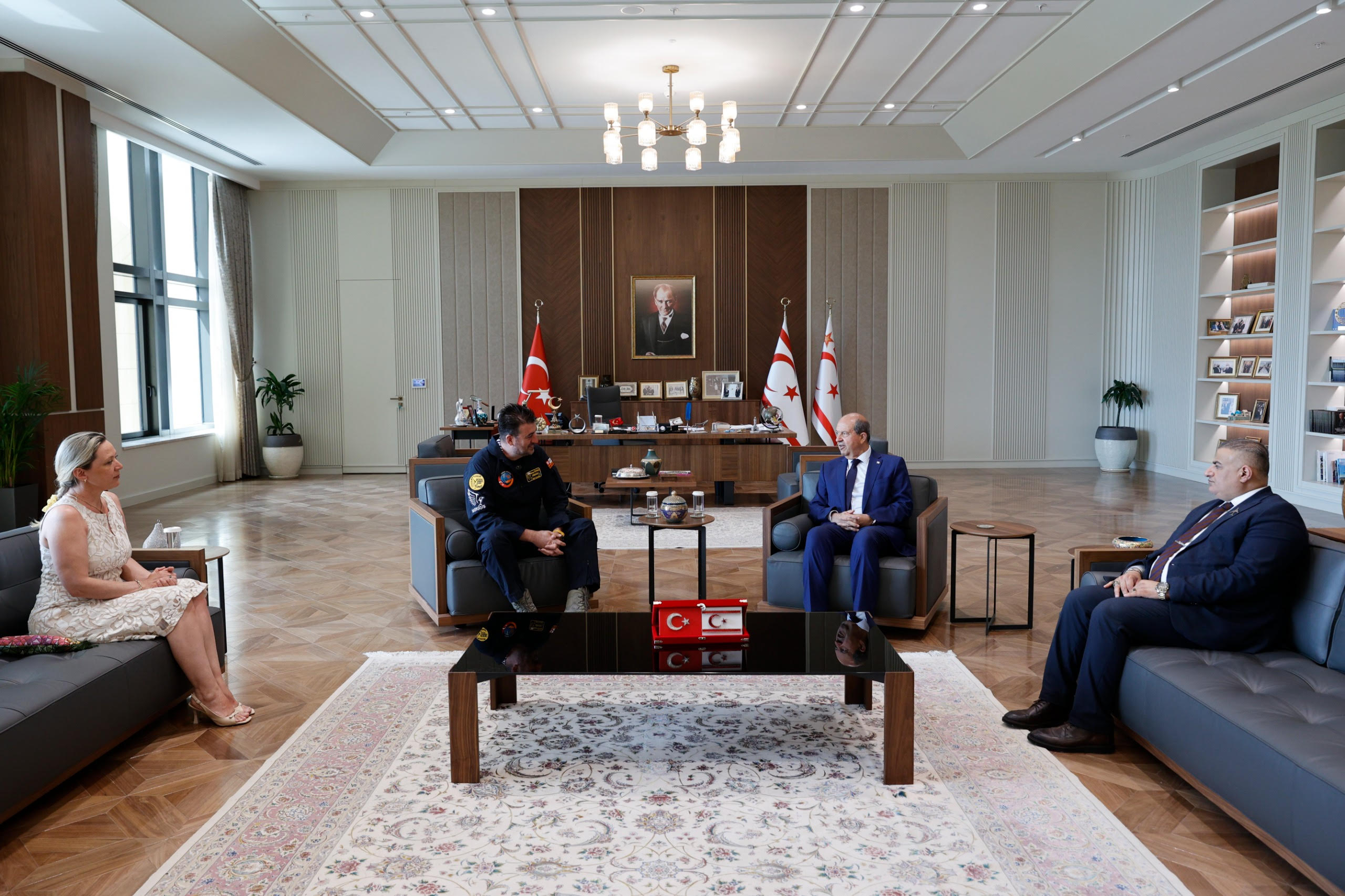 Cumhurbaşkanı Ersin Tatar, TUSAŞ Eğitim Uçakları Baş Test Pilotu Murat Özpala’yı kabul ederek, görüştü.
