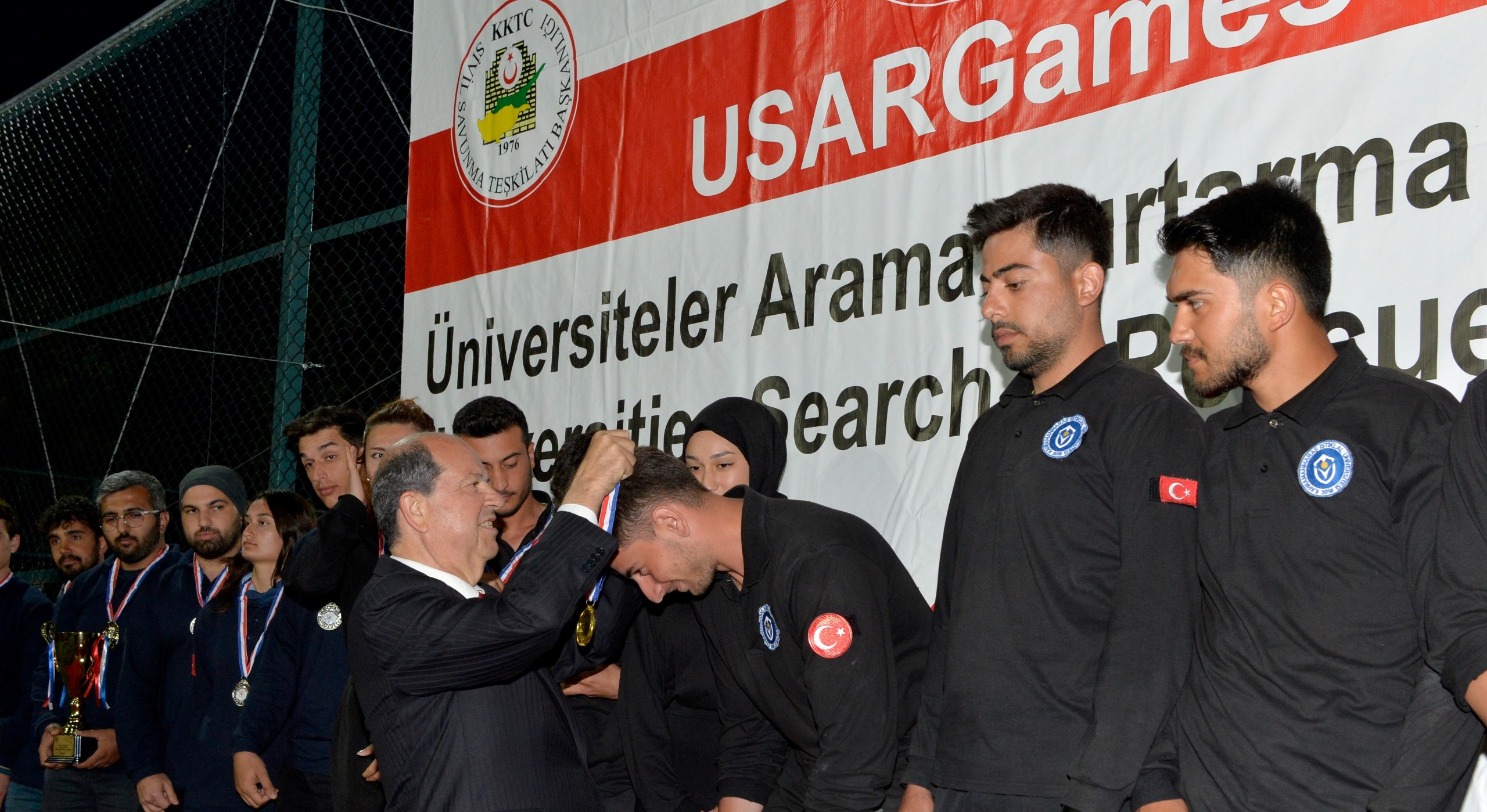 Cumhurbaşkanı Tatar konuşmasının ardından Kuzey Kıbrıs Türk Cumhuriyeti’nde faaliyet gösteren 12 üniversitenin arama kurtarma kulübü üyeleri ile Türkiye Cumhuriyeti’nden 3 üniversitenin Akut ekiplerinin yarıştığı “USARGames 2025 Üniversiteler Arama Kurtarma Oyunlarında ilk üçe giren takımlara madalya ve kupalarını takdim etti.