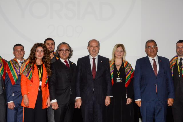 Konuşmanın ardından Cumhurbaşkanı Tatar ve Başbakan Faiz Sucuoğlu, derneğin yeni üyelerine rozet takarken, keyfiye hediye ettiler.BRT