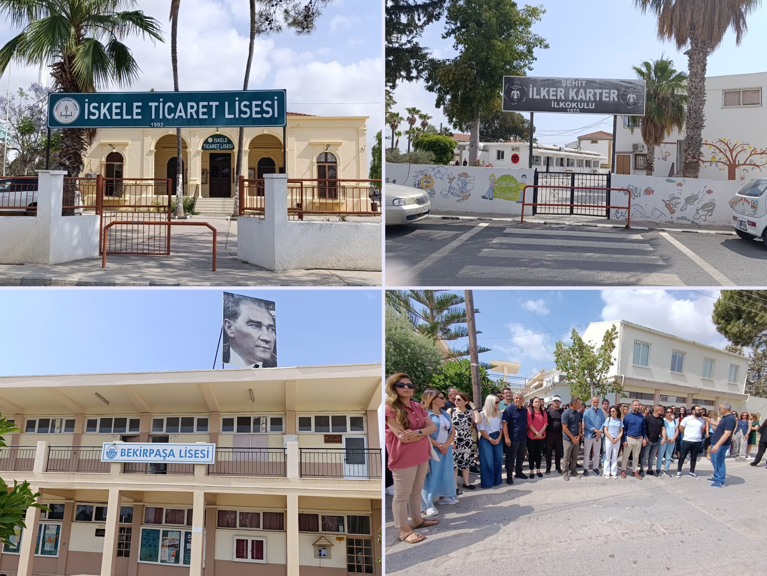 İskele Evkaf Türk Maarif Koleji ve İskele Ticaret Lisesi’nde 07.55 -13.05 saatleri arasında greve giden Sendika, , Bekirpaşa Lisesi önünde ise basın açıklaması yaptı.
