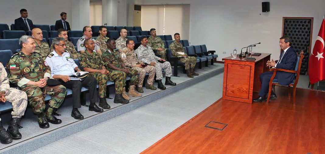 Ziyarette Dışişleri Bakanı Tahsin Ertuğruloğlu konuk askeri ataşelere Kıbrıs konusunda brifing verdi.