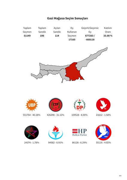 Gazimağusa’da YSK’nın 114 sandığa göre açıkladığı kesin olmayan sonuçlar şöyle: