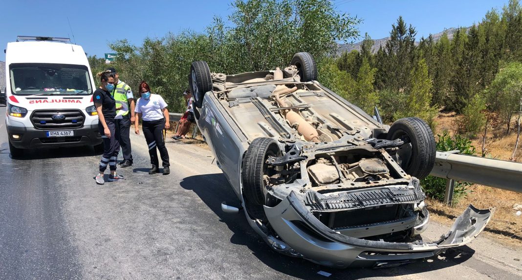 Polis Basın Subaylığı’ndan verilen biligye göre bugün saat 11:50 sıralarında, Girne-Lefkoşa anayolunun 10-11’inci kilometreleri arasında, Lefkoşa’da sakin Aziz GURBANOV (E-25) yönetimindeki KU 257 plakalı araç ile Lefkoşa istikametine doğru seyrettiği sırada, dikkatsizliği sonucu direksiyon hakimiyetini kaybederek orta refüjde bulunan beton korkuluklara aracının sağ ön kısmı ile çarpmış ve takla atarak tavanı üzerinde durmuştur.