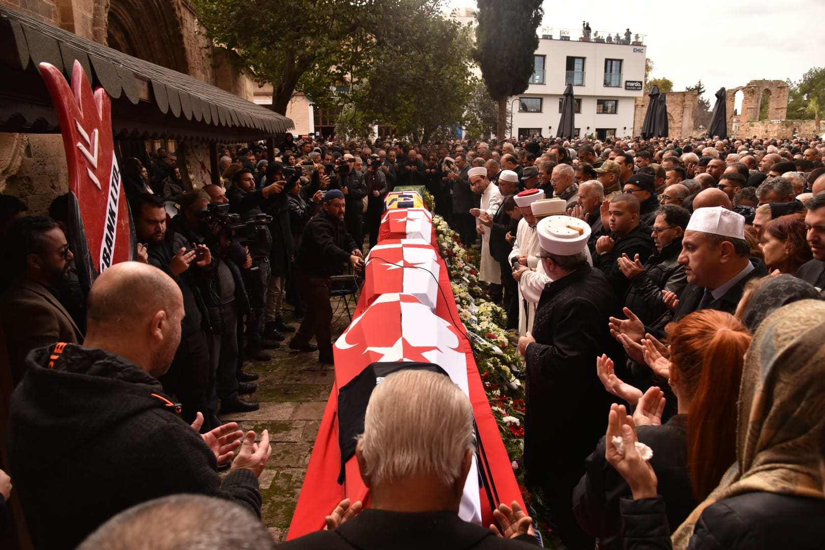 Öğrencilerin tabutları Türk ve KKTC bayraklarına sarıldı.