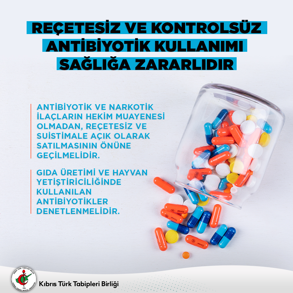 Kıbrıs Türk Tabipleri Birliği (KTTB) kontrolsüz antibiyotik kullanımı konusunda uyararak, ilaçların reçetesiz satışının önüne geçecek düzenlemelerin ivedi olarak hayata geçirilmesini talep etti.