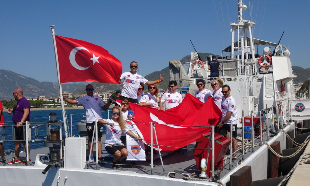 Sağlık durumları anlık olarak izlenen sporculara parkur boyunca Sahil Güvenlik ekipleri de eşlik ediyor.