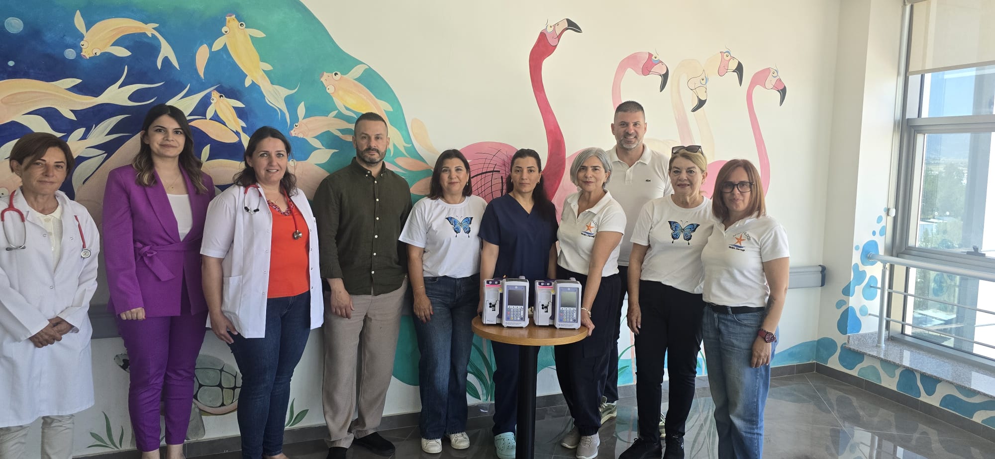 2 adet çift infüzyon pompası, Deniz Yıldızı Yardım Derneği başkanı ve yönetim kurulu üyelerinin katılımıyla Çocuk Hematolojisi Uzmanı Doktor Ayşe Sayılı Erener’e teslim edildi.