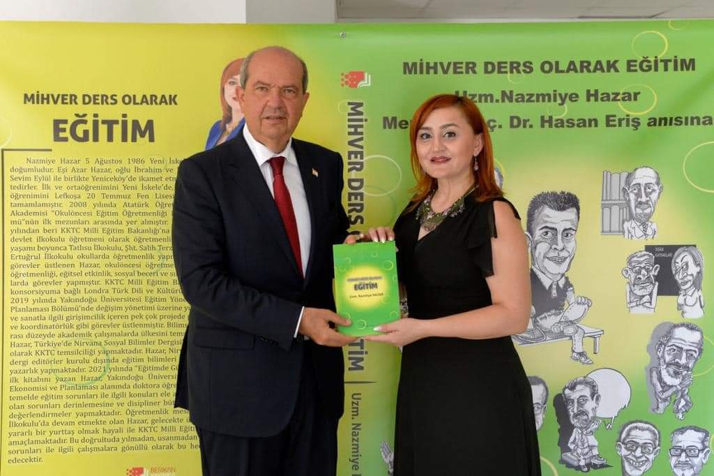 Cumhurbaşkanı Ersin Tatar, merhum eğitimci ve hakem Doç. Dr. Hasan Eriş’i anmak üzere düzenlenen Nazmiye Hazar’ın kalem aldığı “Mihver Ders Olarak Eğitim” isimli kitabın AKM’de yer alan tanıtım ve imza etkinliğine katıldı.