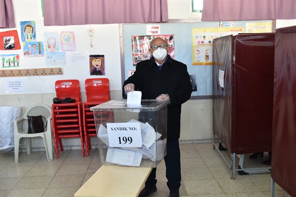 Kalabalık bir grupla oy vermeye gelen Özyiğit’e eşlik edenler arasında LTB Başkanı Mehmet Harmancı da vardı.