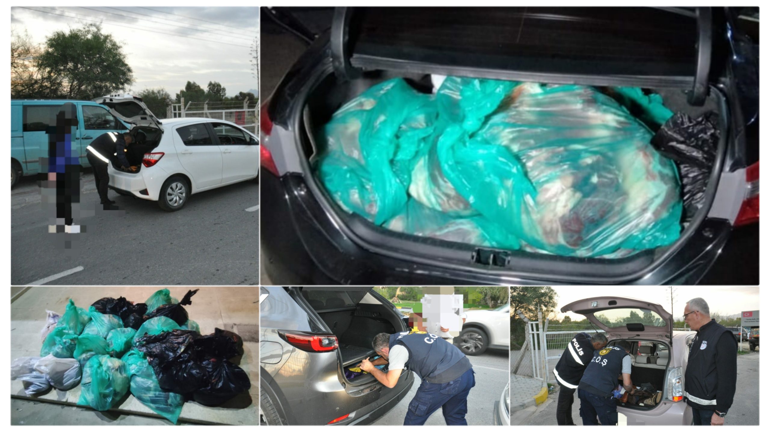 Denetimler kapsamında Güney Kıbrıs Rum Yönetimi’nden KKTC‘ye geçiş yapan araçlarda polis tarafından yapılan aramalarda 41 yaşındaki bir kişinin kullanımındaki araçta gümrüğe beyan edilmemiş toplam 571,5 kilogram ağırlığında büyük baş hayvan eti bulunarak emare olarak alındı.