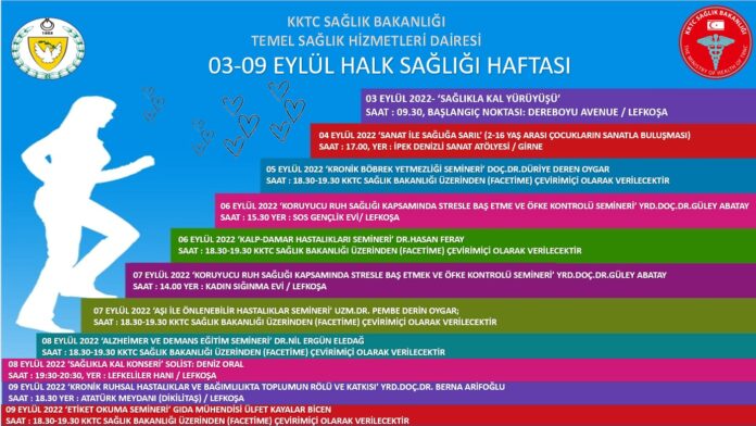 Sağlık Bakanlığı’ndan yapılan açıklamaya göre, 3-9 Eylül Halk Sağlığı Haftası dolayısıyla, hafta boyunca çeşitli etkinlikler ve seminerler düzenlenecek.