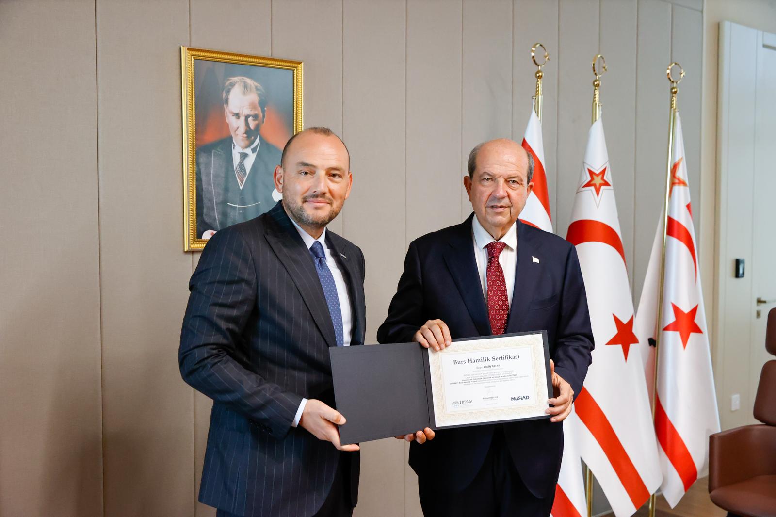 Cumhurbaşkanı Ersin Tatar, Burhan Özdemir başkanlığındaki Müstakil Sanayici ve İşadamları Derneği (MÜSİAD) heyetini kabul etti.