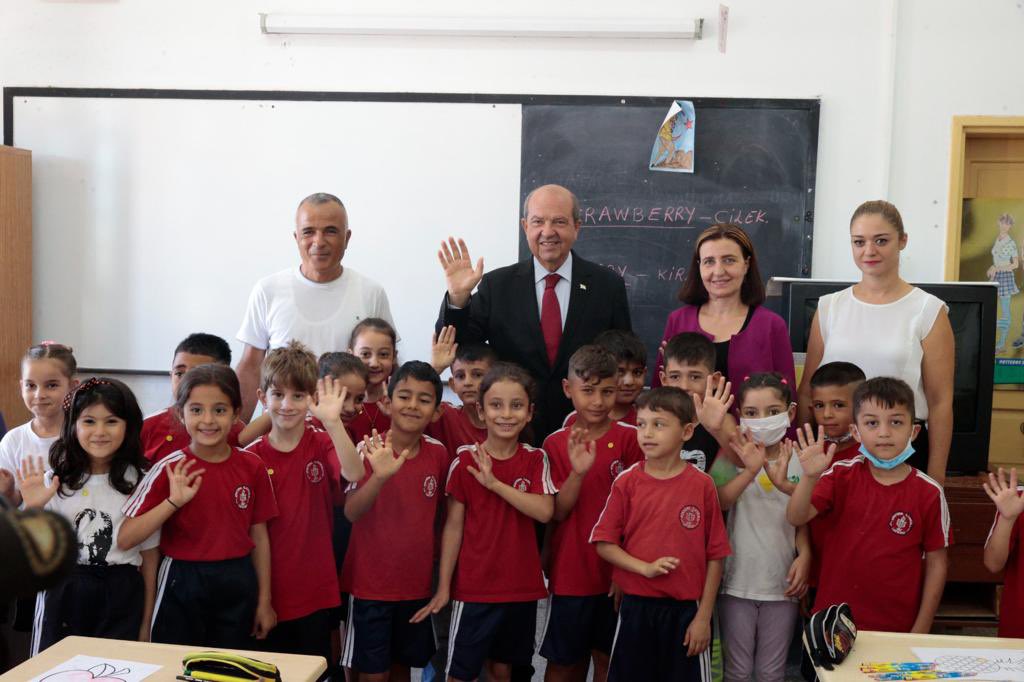 Cumhurbaşkanı Tatar sınıfları gezerek öğrencilere hitaben yaptığı konuşmada, başarılı bir eğitim yılı geçirmeleri temennisinde bulundu.