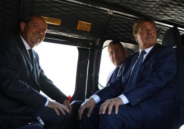 Oktay, KKTC’ye gelişinin ardından, havadan inceleme yapmak üzere, Cumhurbaşkanı Ersin Tatar, Başbakan Ünal Üstel ile birlikte helikopterle yangın bölgesine hareket etti.