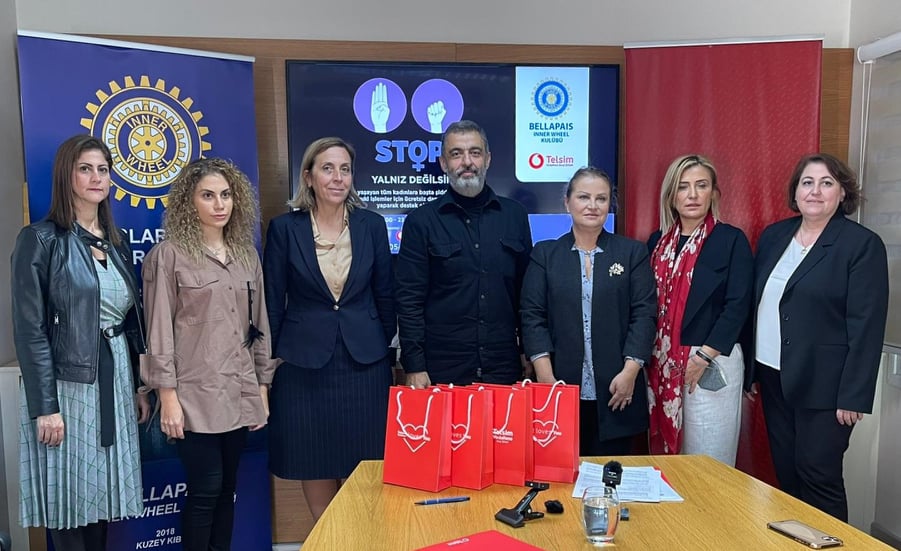 Bellapais Inner Wheel Derneği olarak amaçlarının, kadın hakları, toplumsal cinsiyet eşitliği konusunda farkındalık yaratmak, kadına yönelik şiddeti önlemeye ve azaltmaya karşı mekanizmaları yaymak olduğunu ifade eden, Bellapais Inner Wheel Dernek Başkanı Ayşem Erişir, “Bu amaç ile 25 Kasım Dünya Kadına Yönelik Şiddetle Mücadele Günü kapsamında “Yalnız Değilsin’’ projemizi başlattık.” dedi. Erişir, “Büyük duyarlılık göstererek; teknoloji ve iletişim alanında 3 tane whatsup hattı ve 3 adet hattın kullanılabileceği telefon cihazı temin ederek sponsor olan Telsim’e ve TELSİM GENEL MÜDÜR YARDIMCISI FEVZİ TANPINAR’ a çok teşekkür ediyoruz.” dedi.