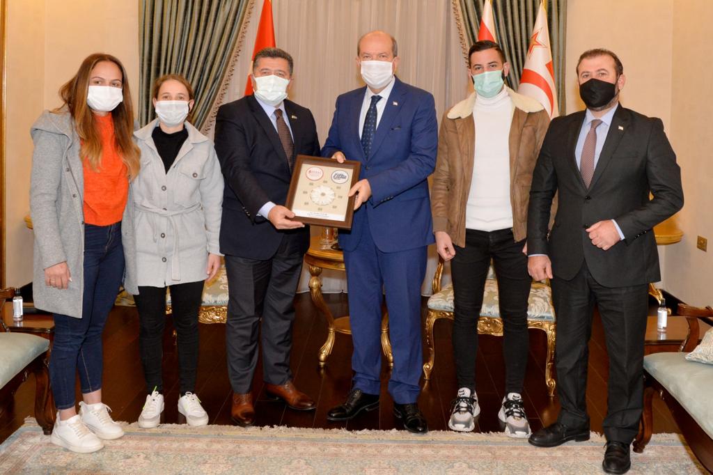 Cumhurbaşkanı Ersin Tatar, KKTC Futbol Tenisi Federasyonu Başkanı Şevket Songur, antrenör ve sporcuları kabul ederek görüştü.