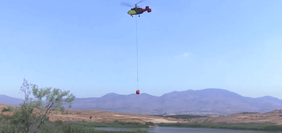 Senaryo gereği Gönyeli Barajı’ndan aldığı suyu, yine yangın bölgesi olarak tanımlanan baraj içerisindeki noktaya bırakan helikopter, görevi başarıyla tamamlayarak yaz boyunca konuşlanacağı Orman Dairesi’nin Lefkoşa Sanayi Bölgesi’ndeki Kereste Atölyesi’ne döndü.